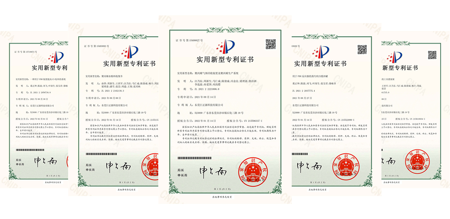 近日,經(jīng)國家知識(shí)產(chǎn)權(quán)局審查,東莞巨正源科技有限公司的“聚丙烯氣體回收裝置及聚丙烯生產(chǎn)系統(tǒng)”、“聚丙烯水粉料收集車”、“一種用于PDH裝置提高C3收率的系統(tǒng)”等23項(xiàng)實(shí)用新型專利正式獲得授權(quán)。