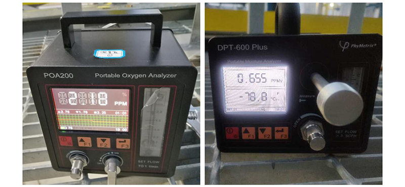 經(jīng)檢測(cè),氧含量及水均已合格,氮?dú)饧兌瘸^(guò)99.99%,質(zhì)量?jī)?yōu)于設(shè)計(jì)指標(biāo)。該裝置每小時(shí)生產(chǎn)氮?dú)?0000標(biāo)準(zhǔn)立方米,每小時(shí)生產(chǎn)液氮570標(biāo)準(zhǔn)立方米,可為生產(chǎn)裝置投產(chǎn)、運(yùn)行提供用氣保障。