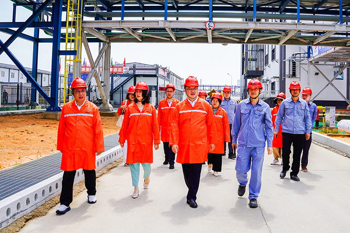 7月18日,廣東省國資委黨委委員、副主任王曉昀帶隊赴巨正源(揭陽)新材料基地醋酸項目開展調研。廣物控股集團黨委副書記、工會主席鐘慧玲參加調研。
